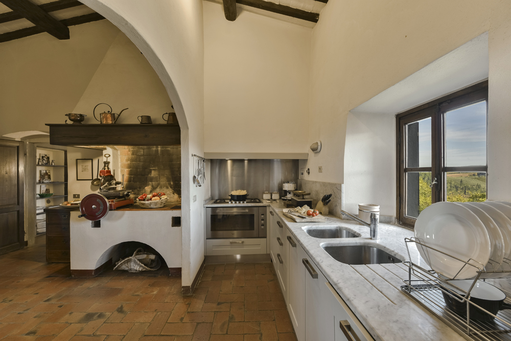 Spinelli Country House' - Great atmosphere and relaxing view over the typical Tuscan hills surrounded by vineyards, olive and cypress trees. The typical Tuscan architecture dates back to the year 15th century with an exclusive court-yard including an antique oven and a barbecue ideal for dining outside in summer. An extensive garden area invites pathways and enjoys the total peace and tranquility of the surroundings. Despite its total privacy, the villa is only a few km from San Gimignano (35 minutes drive), Greve (20 minutes), Firenze (30 minutes) and Siena (50 minutes). All essential services are in the small town of Mercatale which is at 5 minutes drive. Amenities: Nearest horse riding (5 Km) - Golf Country Club 'Ugolino' (20 Km). Fenced swimming pool (5x10m) |